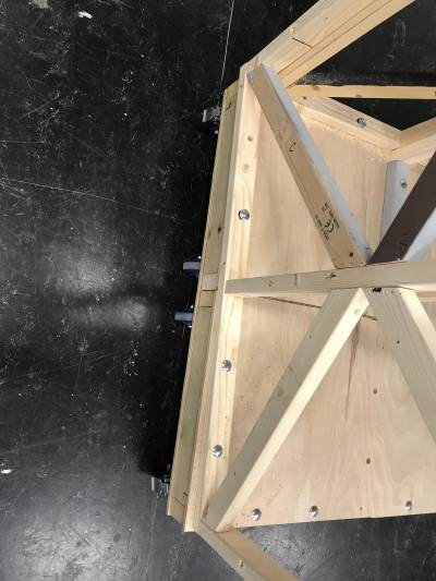 Replace the top plywood but do not bolt it down yet. Apply all four brakes.